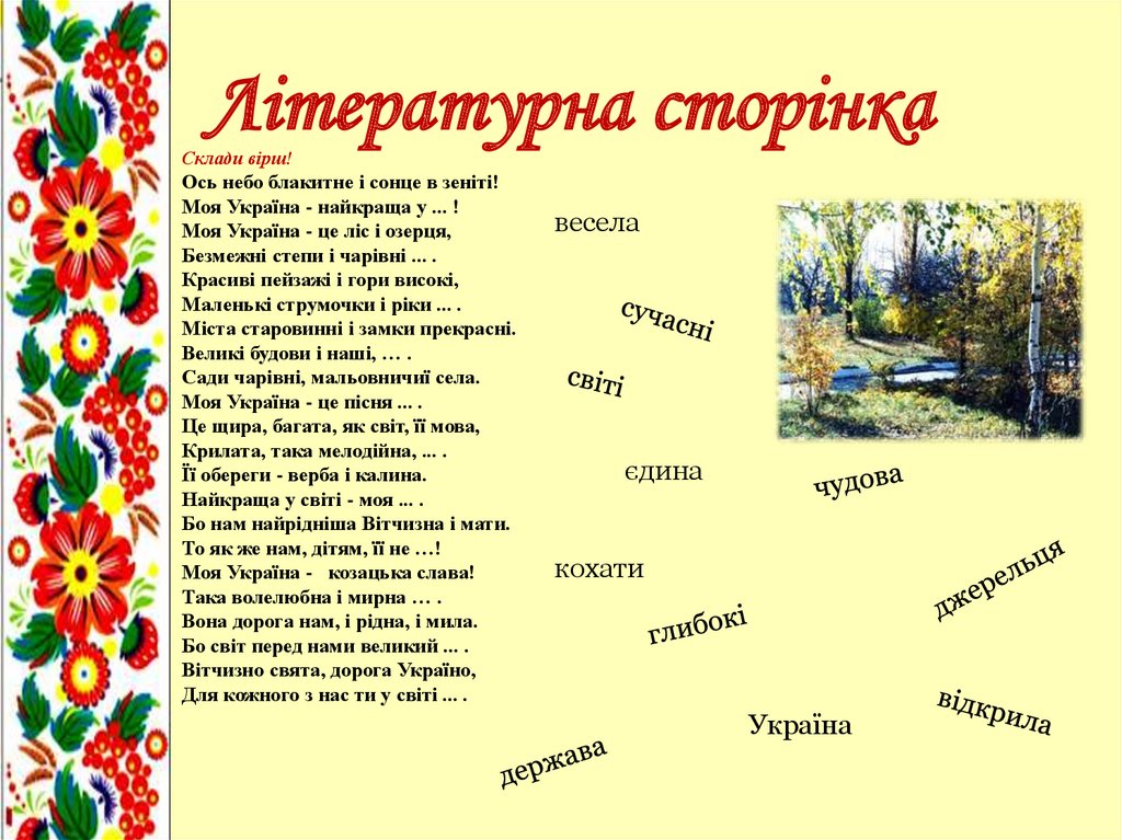 Красивий, щедрий рідний крайІ мова наша солов'їна.