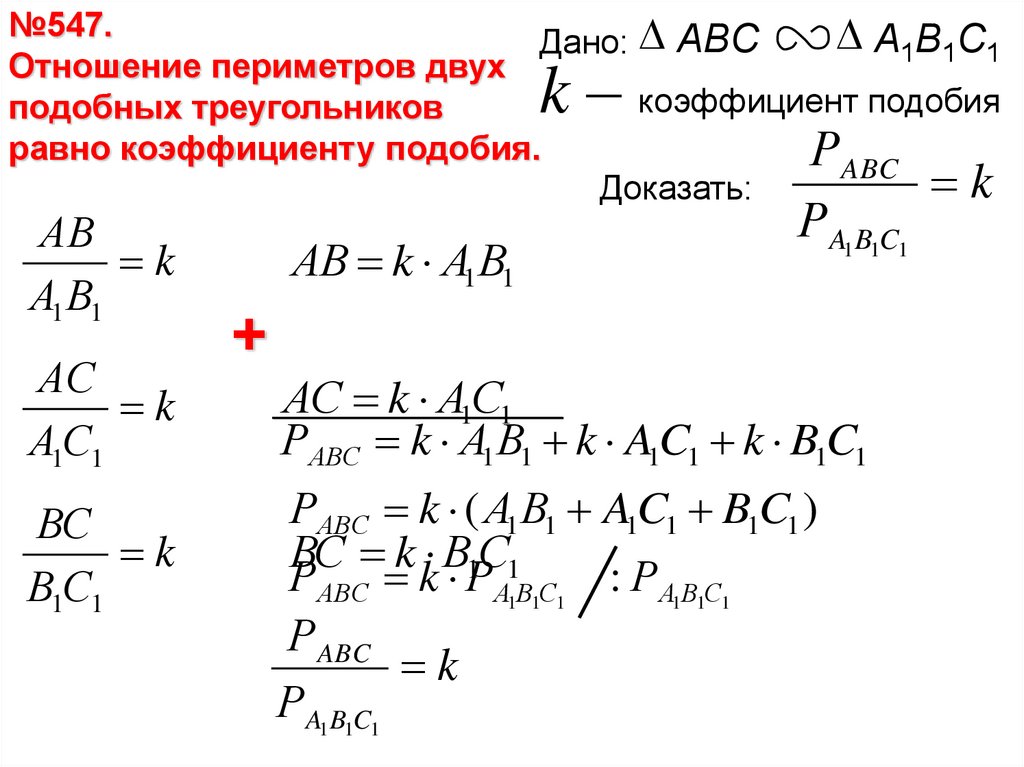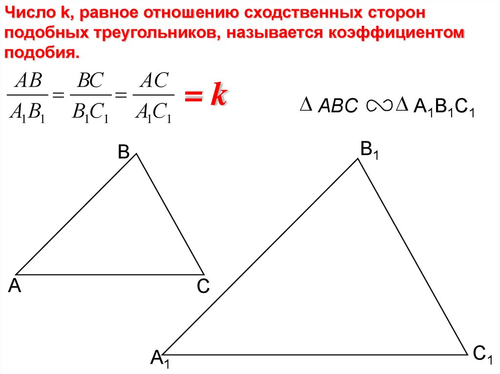 Число k, равное отношению сходственных сторонподобных треугольников, называется коэффициентом