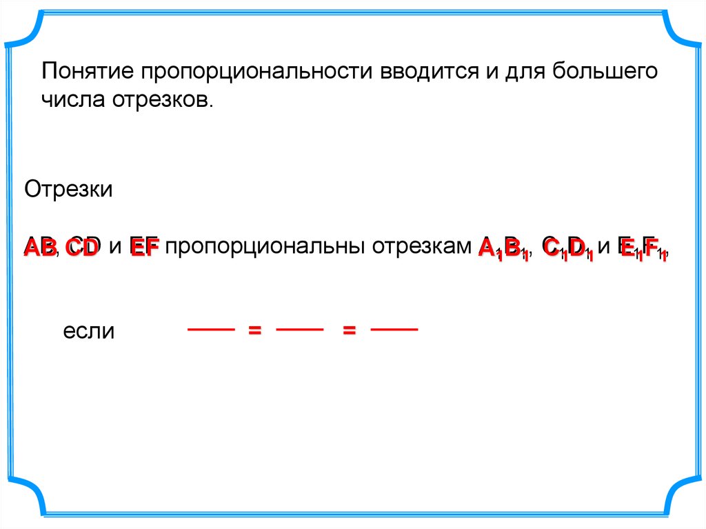 Понятие пропорциональности вводится и для большегочисла отрезков.