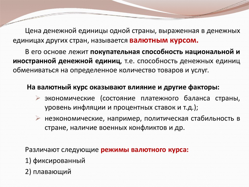 Цена денежной единицы одной страны, выраженная в денежныхединицах других стран, называется валютным курсом.