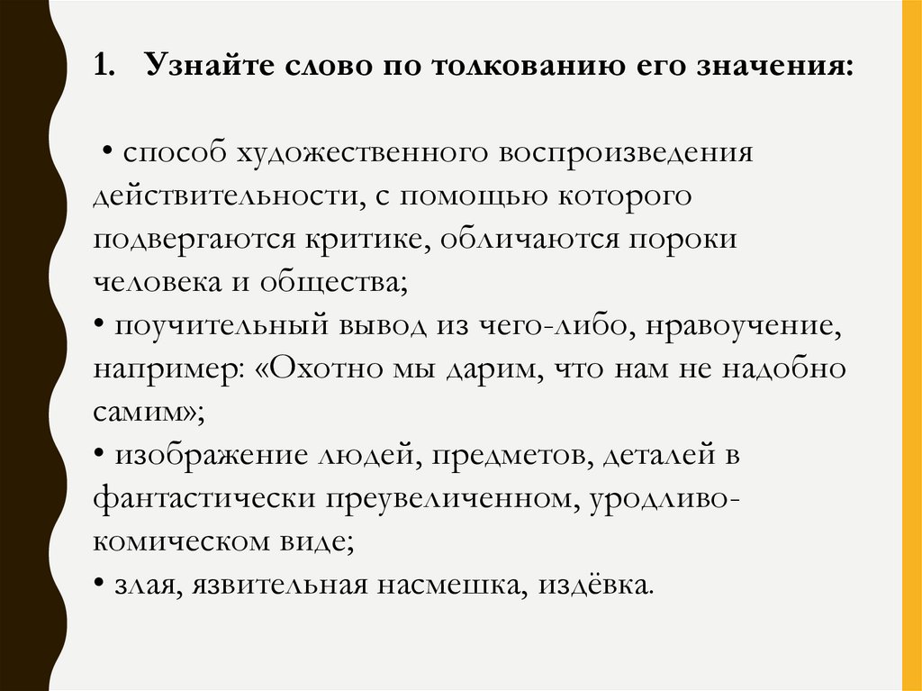 1. Узнайте слово по толкованию его значения:• способ художественного воспроизведения