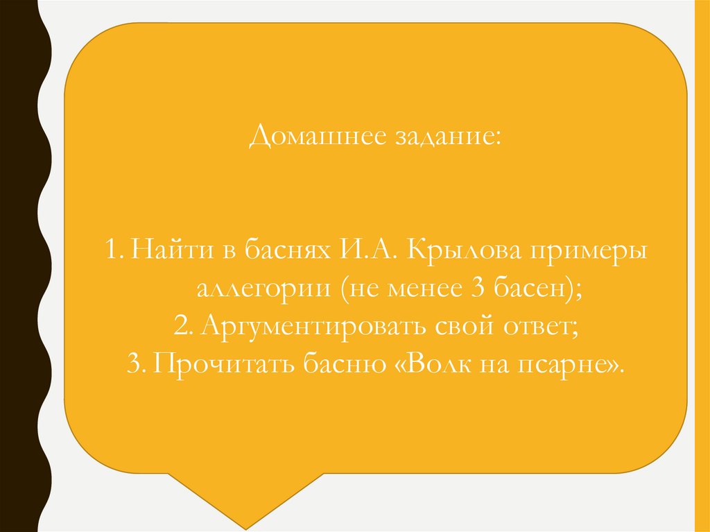 Домашнее задание:1. Найти в баснях И.А. Крылова примеры