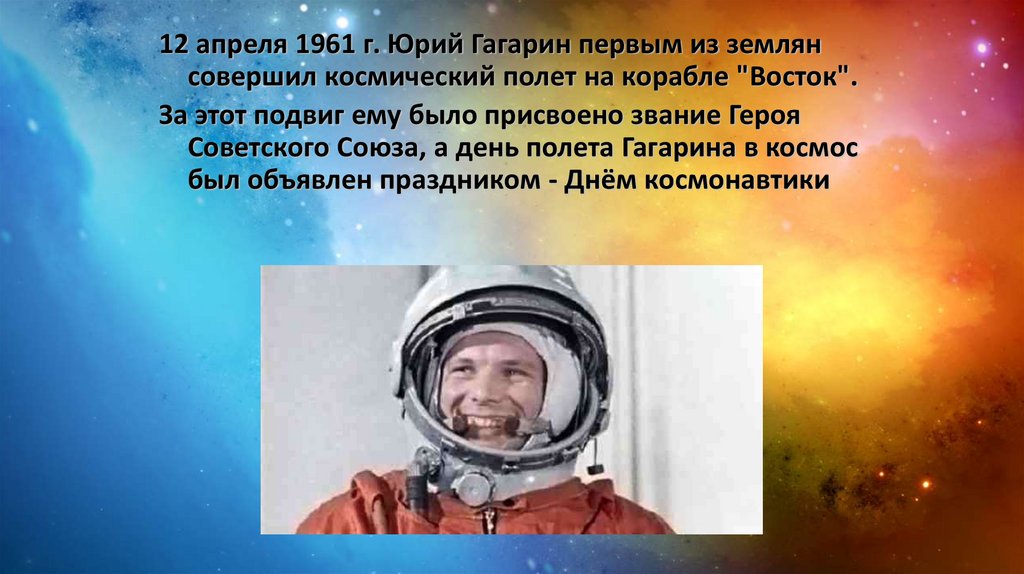 Советского Союза, а день полета Гагарина в космос