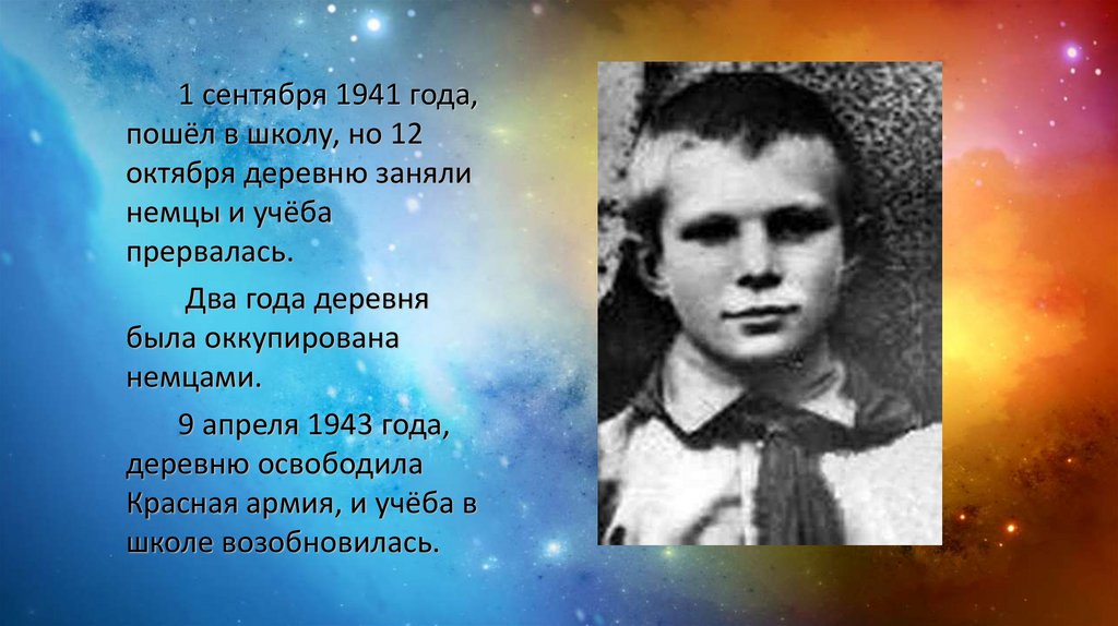 1 сентября 1941 года,пошёл в школу, но 12