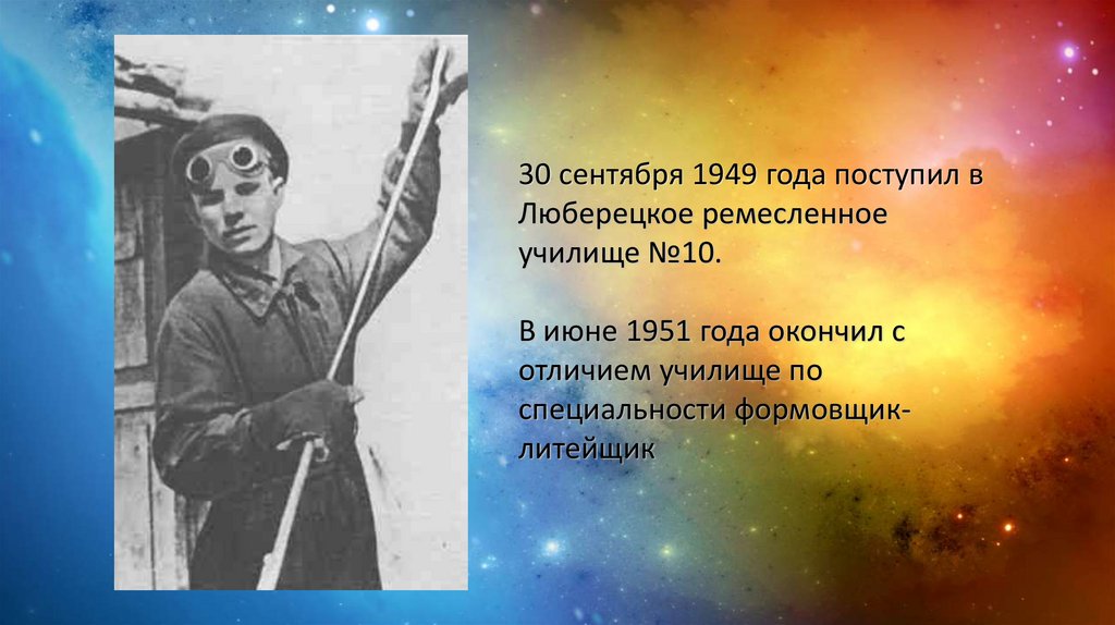 30 сентября 1949 года поступил вЛюберецкое ремесленное