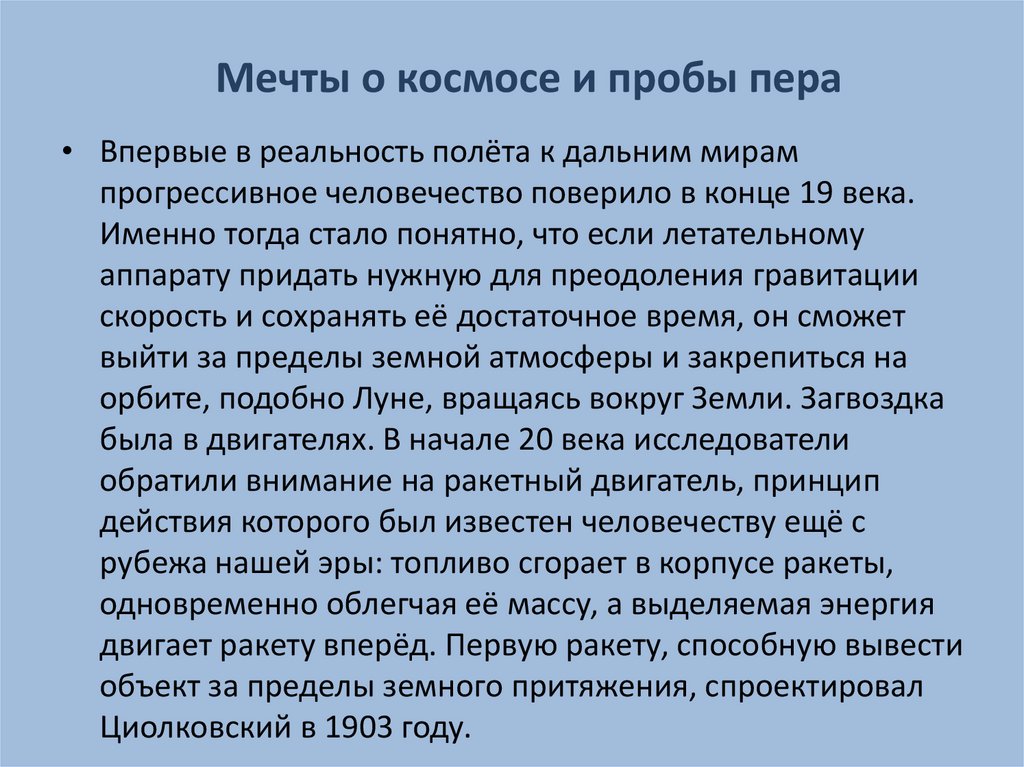 Мечты о космосе и пробы пера• Впервые в реальность полёта к дальним мирам
