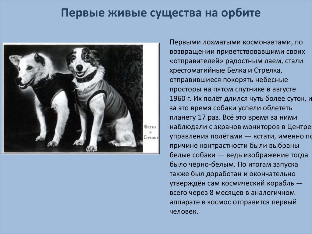 Первые живые существа на орбитеПервыми лохматыми космонавтами, по