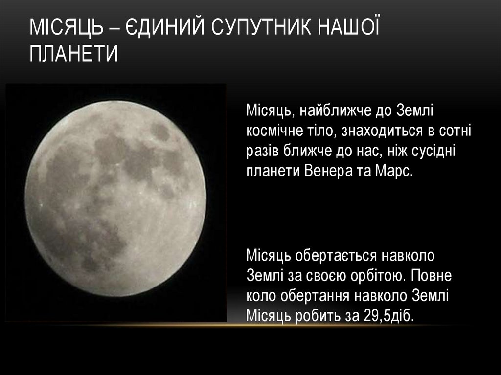 МІСЯЦЬ – ЄДИНИЙ СУПУТНИК НАШОЇПЛАНЕТИ