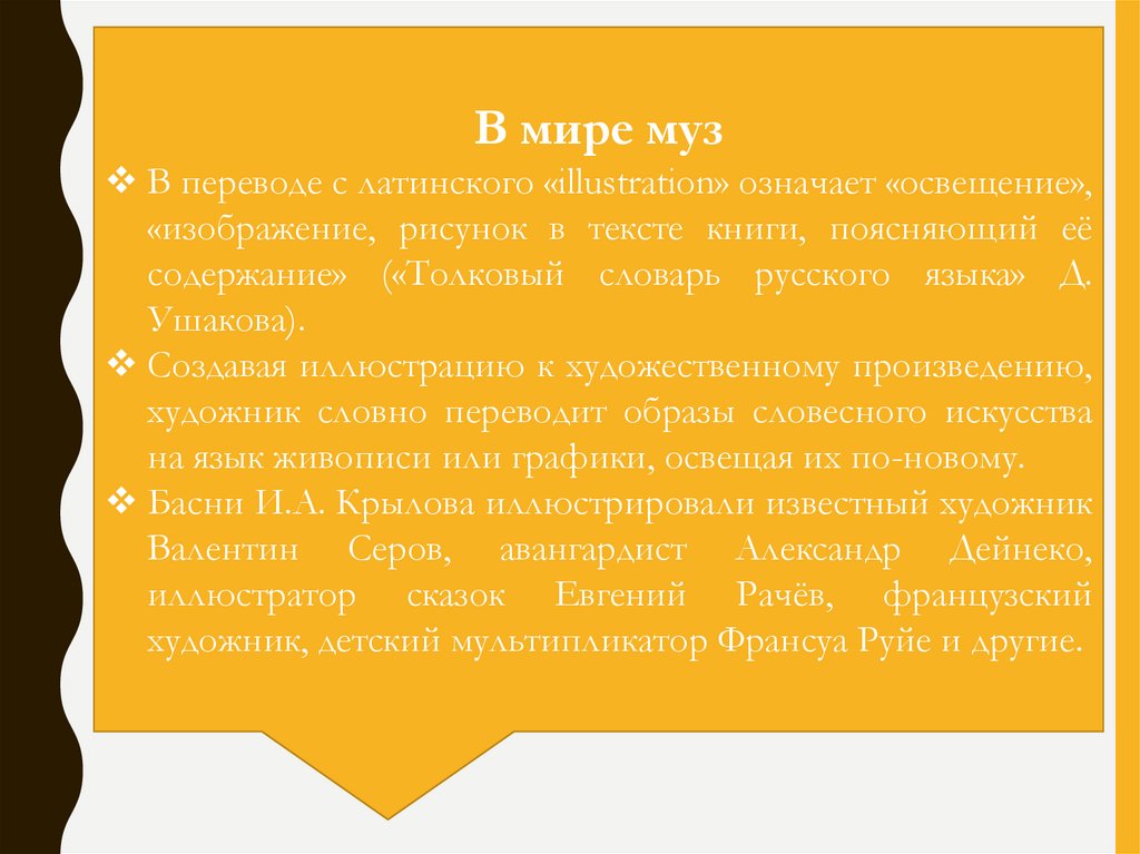 В мире музВ переводе с латинского «illustration» означает «освещение»,