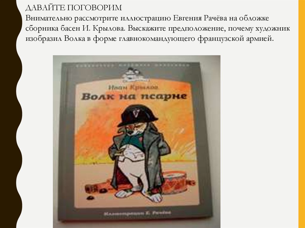ДАВАЙТЕ ПОГОВОРИМВнимательно рассмотрите иллюстрацию Евгения Рачёва на обложке