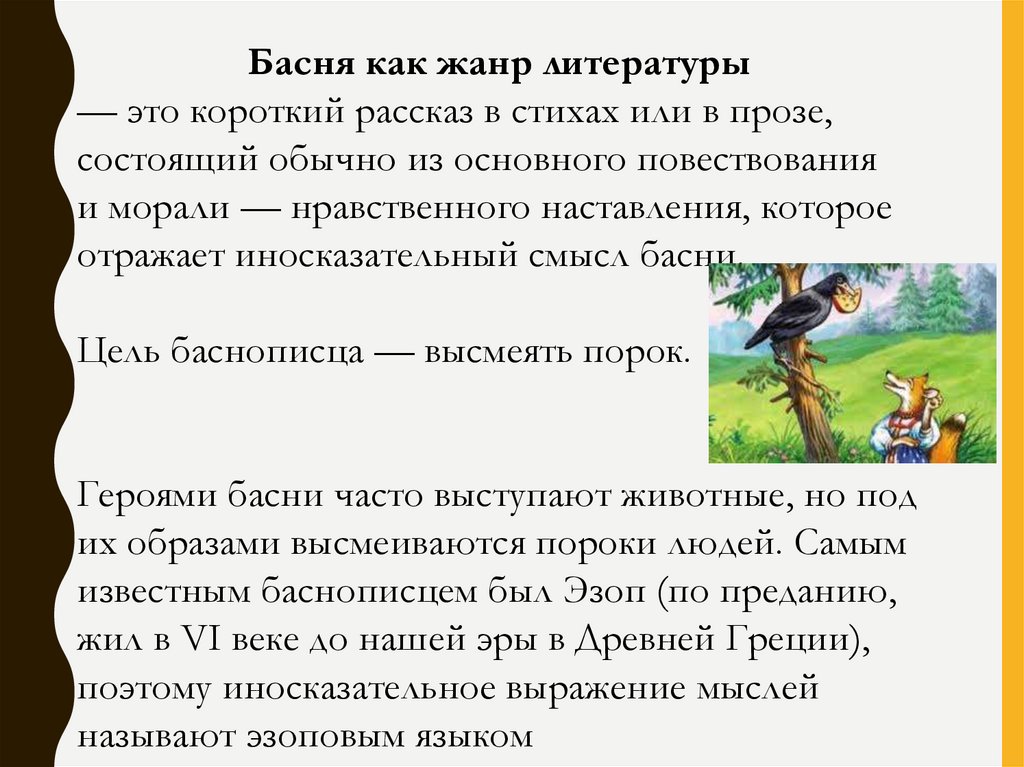 Басня как жанр литературы— это короткий рассказ в стихах или в прозе,