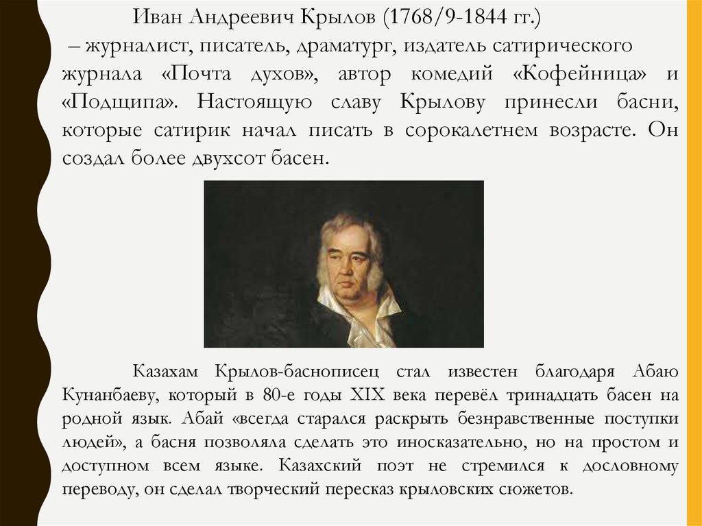 Казахам Крылов-баснописец стал известен благодаря Абаю