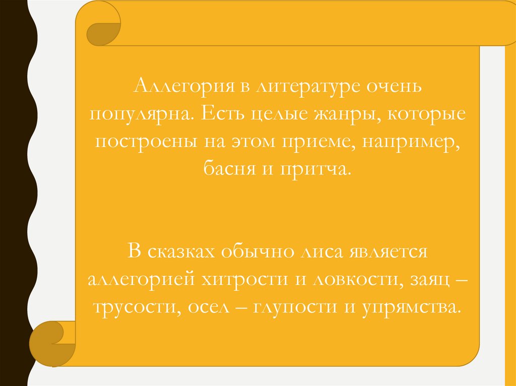 Аллегория в литературе оченьпопулярна. Есть целые жанры, которые