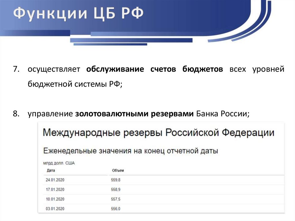 8. управление золотовалютными резервами Банка России;
