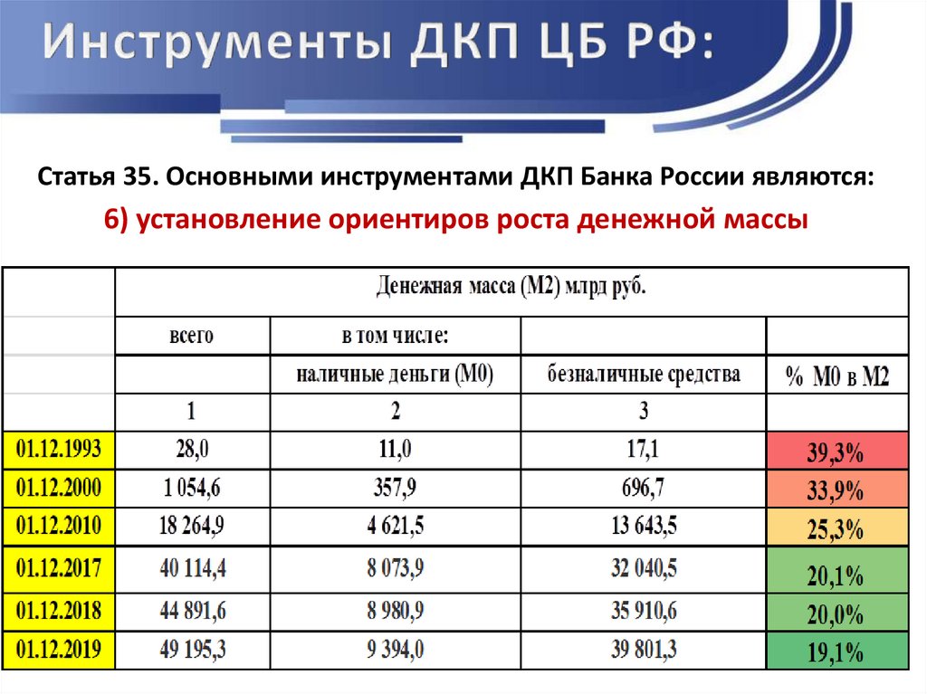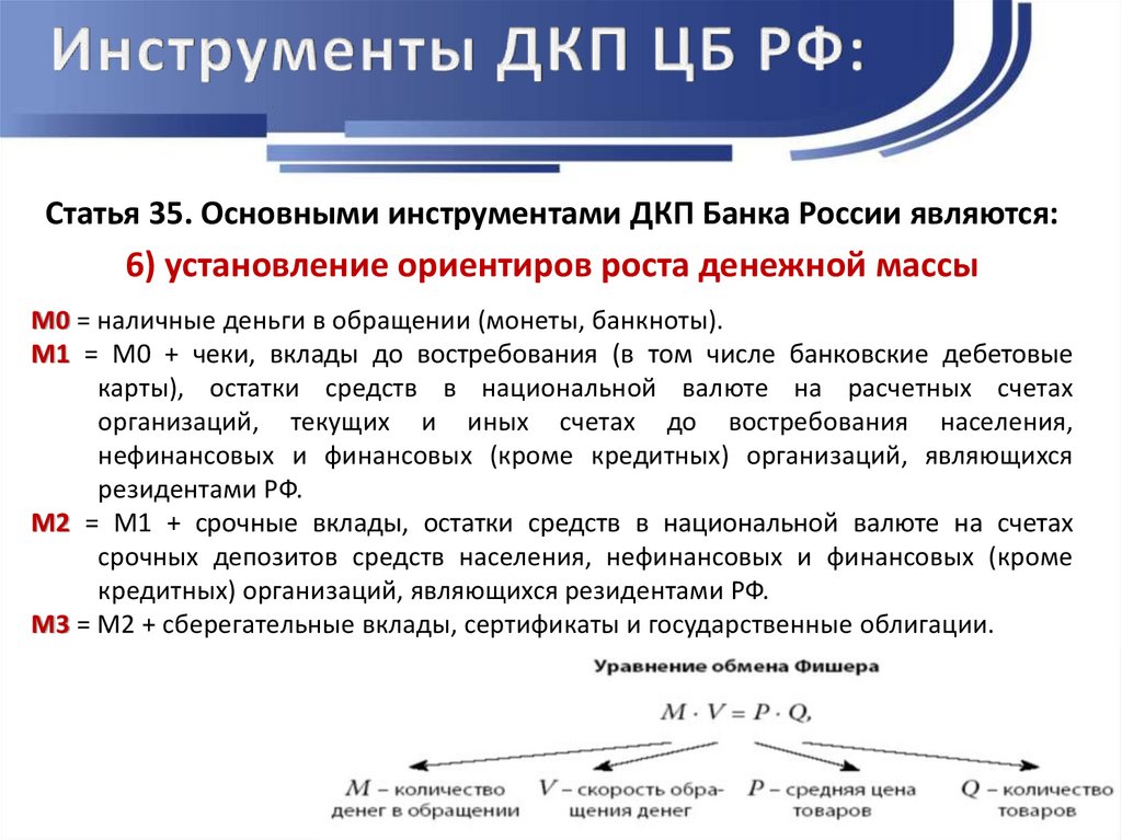 Статья 35. Основными инструментами ДКП Банка России являются:6) установление ориентиров роста денежной массы