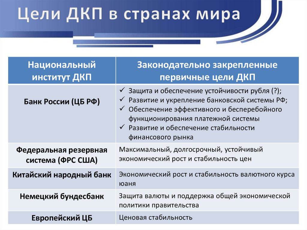 стабильности цен и др.
