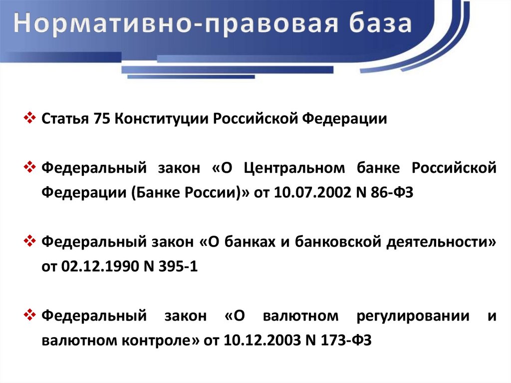 Статья 75 Конституции Российской ФедерацииФедеральный закон «О Центральном банке Российской