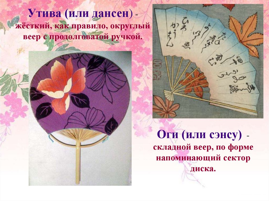 Утива (или дансен) жёсткий, как правило, округлыйвеер с продолговатой ручкой.