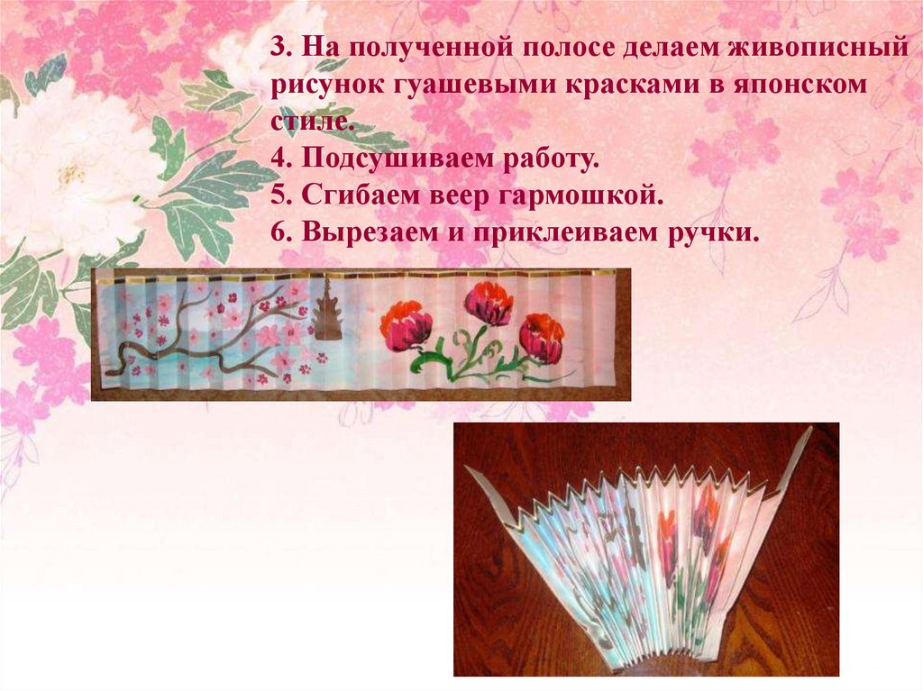 3. На полученной полосе делаем живописныйрисунок гуашевыми красками в японском