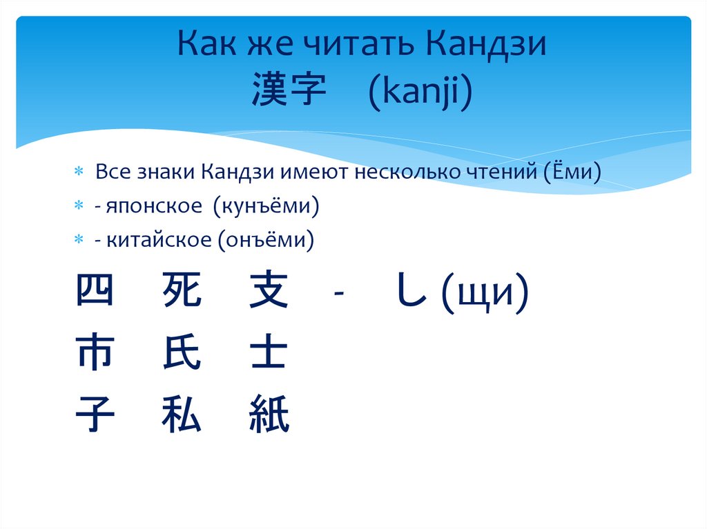 Все знаки Кандзи имеют несколько чтений (Ёми)