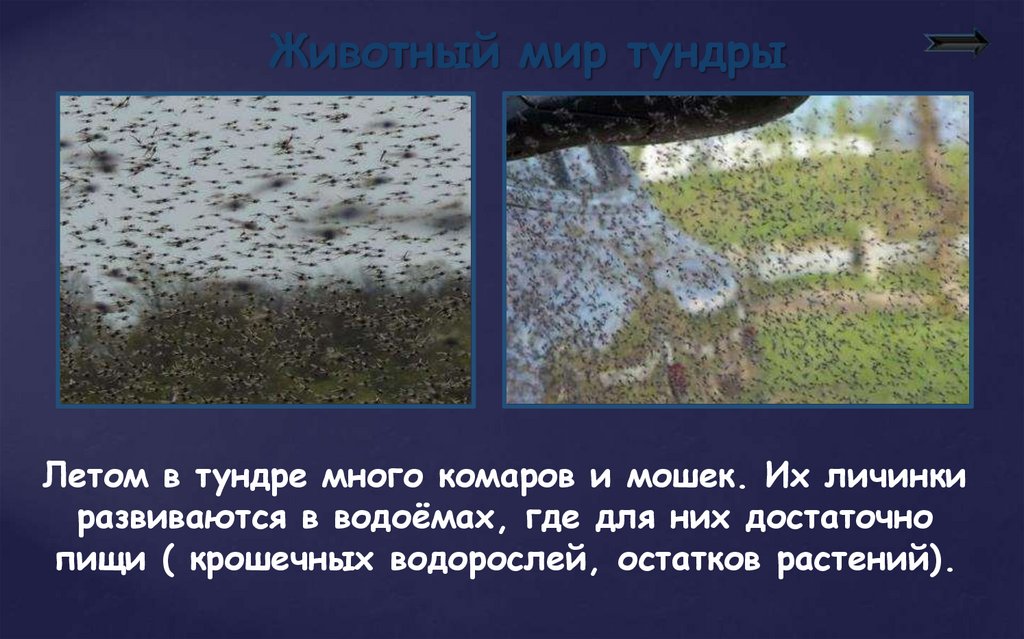Животный мир тундрыЛетом в тундре много комаров и мошек. Их личинки