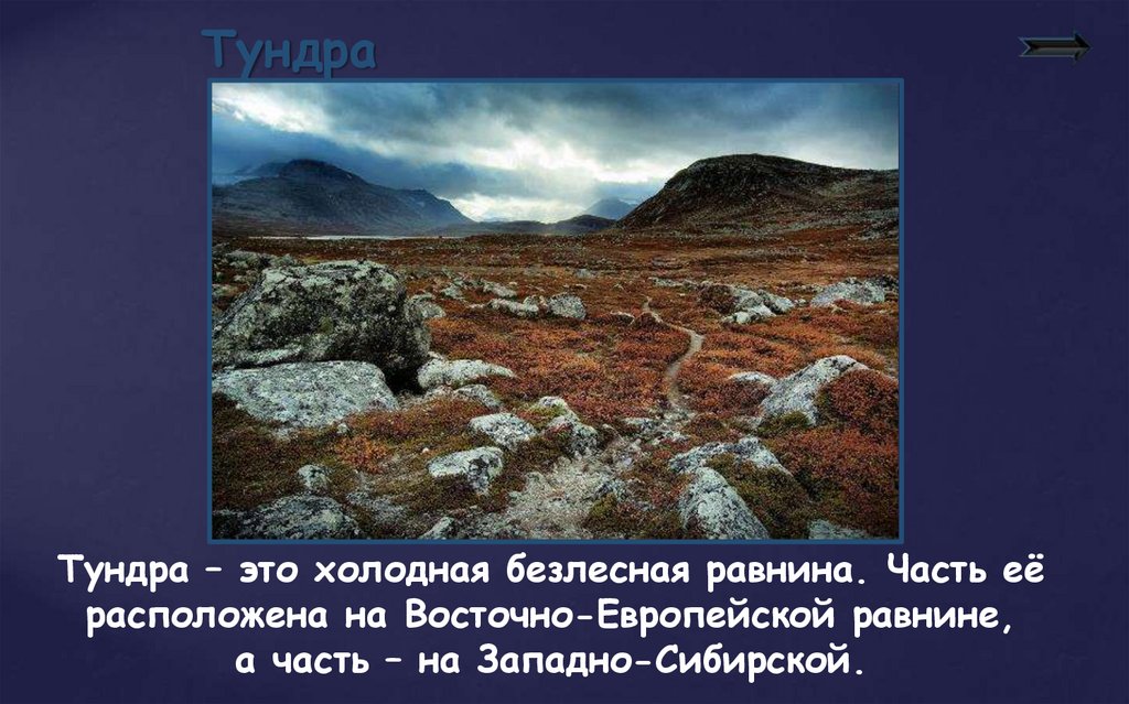 ТундраТундра – это холодная безлесная равнина. Часть её