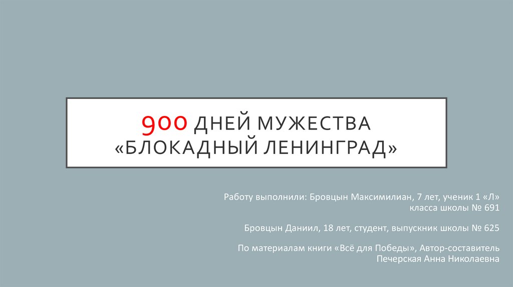 900 ДНЕЙ МУЖЕСТВА«БЛОКАДНЫЙ ЛЕНИНГРАД»