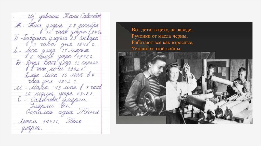 оставались жить и работать. Дети помогали делать снаряды для фронта на заводах и