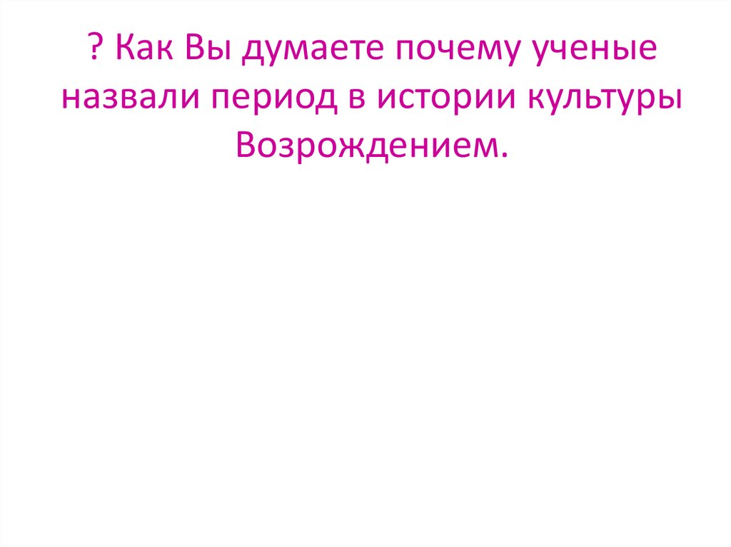 ? Как Вы думаете почему ученыеназвали период в истории культуры