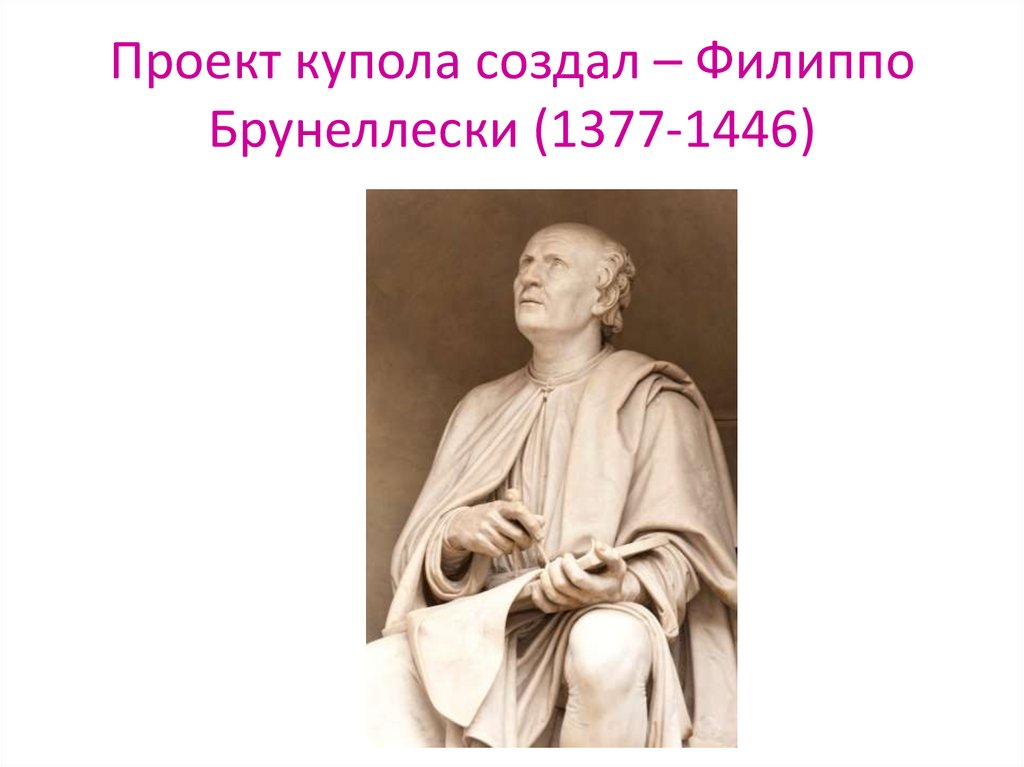 Проект купола создал – ФилиппоБрунеллески (1377-1446)