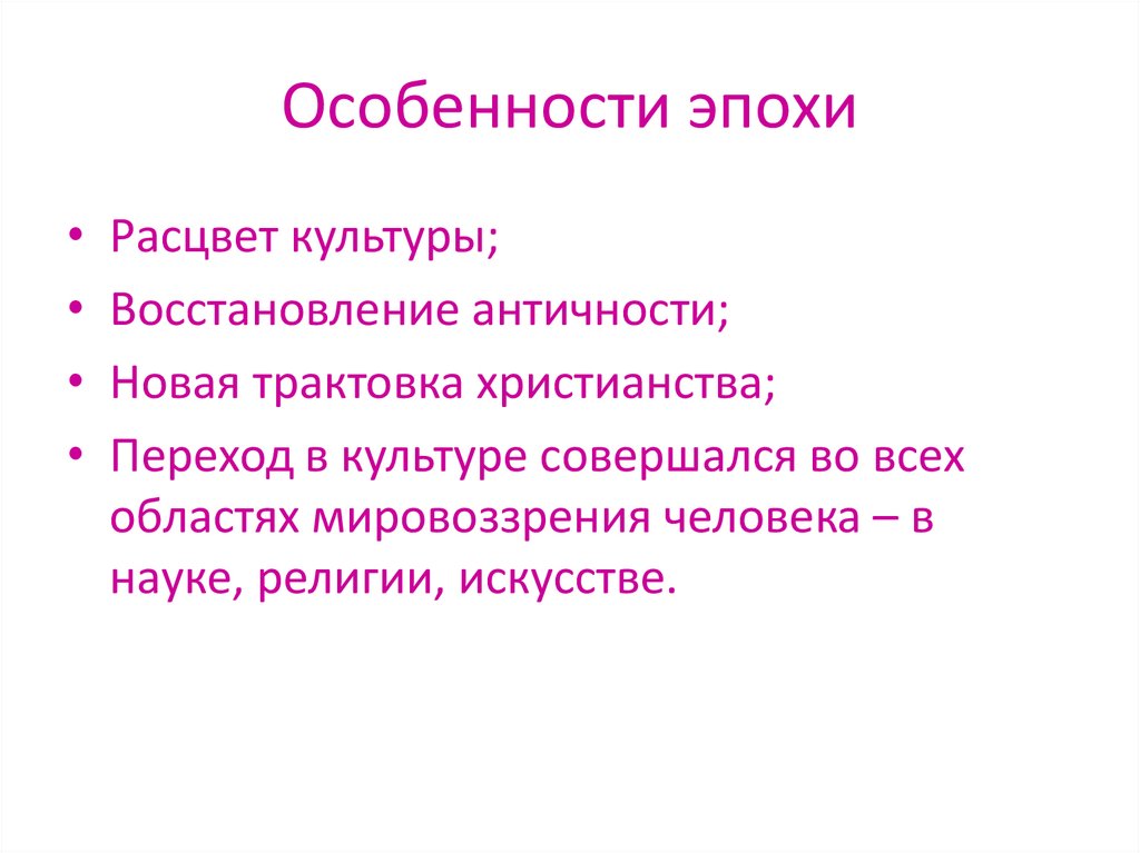 Особенности эпохиРасцвет культуры;