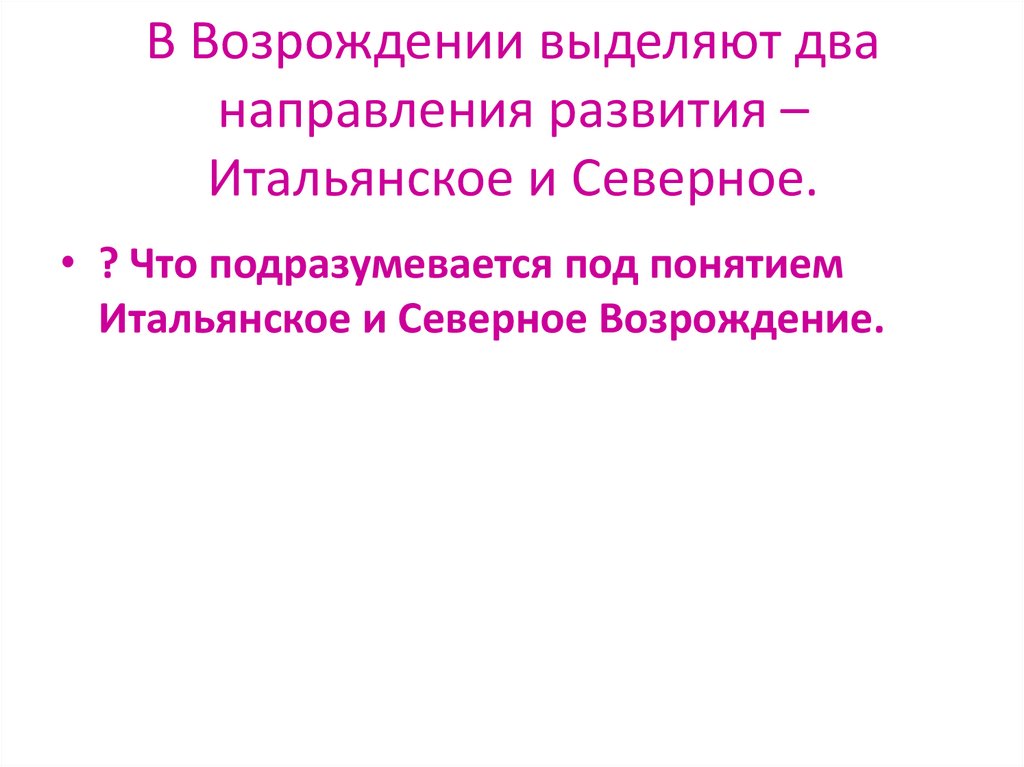 В Возрождении выделяют дванаправления развития –