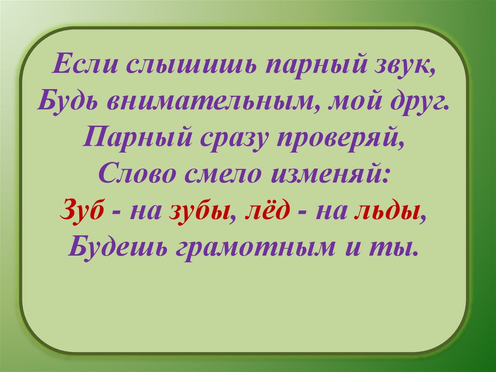 Если слышишь парный звук,Будь внимательным, мой друг.