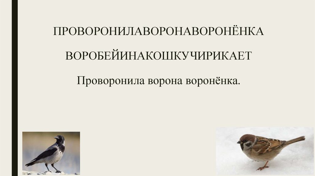 ПРОВОРОНИЛАВОРОНАВОРОНЁНКАВОРОБЕЙИНАКОШКУЧИРИКАЕТ