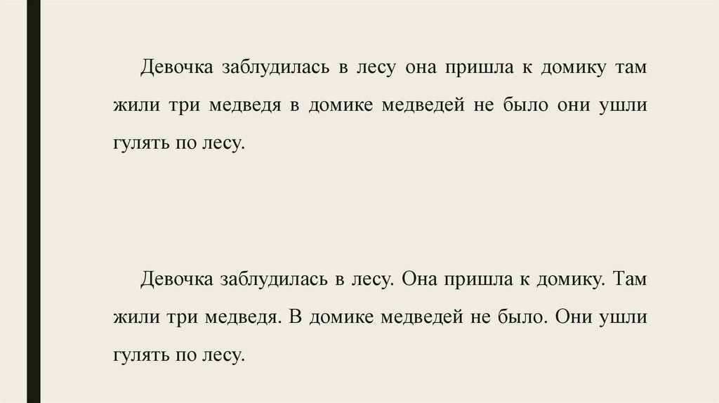 Девочка заблудилась в лесу она пришла к домику тамжили три медведя в домике медведей не было они ушли
