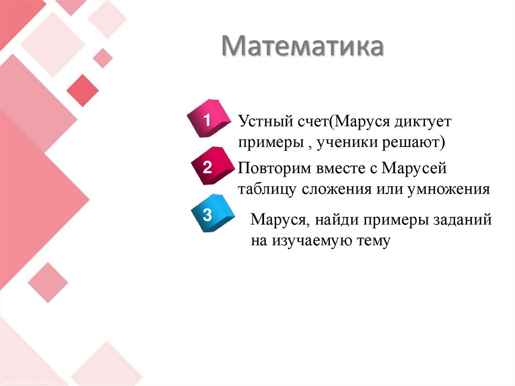Устный счет(Маруся диктует
