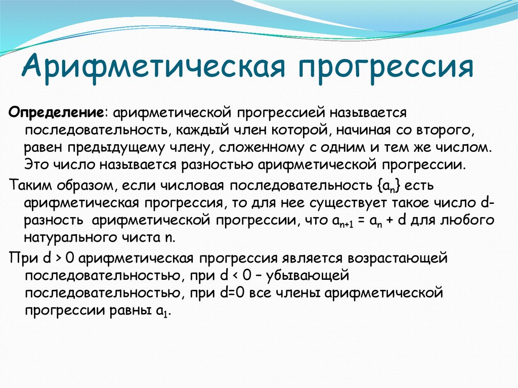 Арифметическая прогрессияОпределение: арифметической прогрессией называется