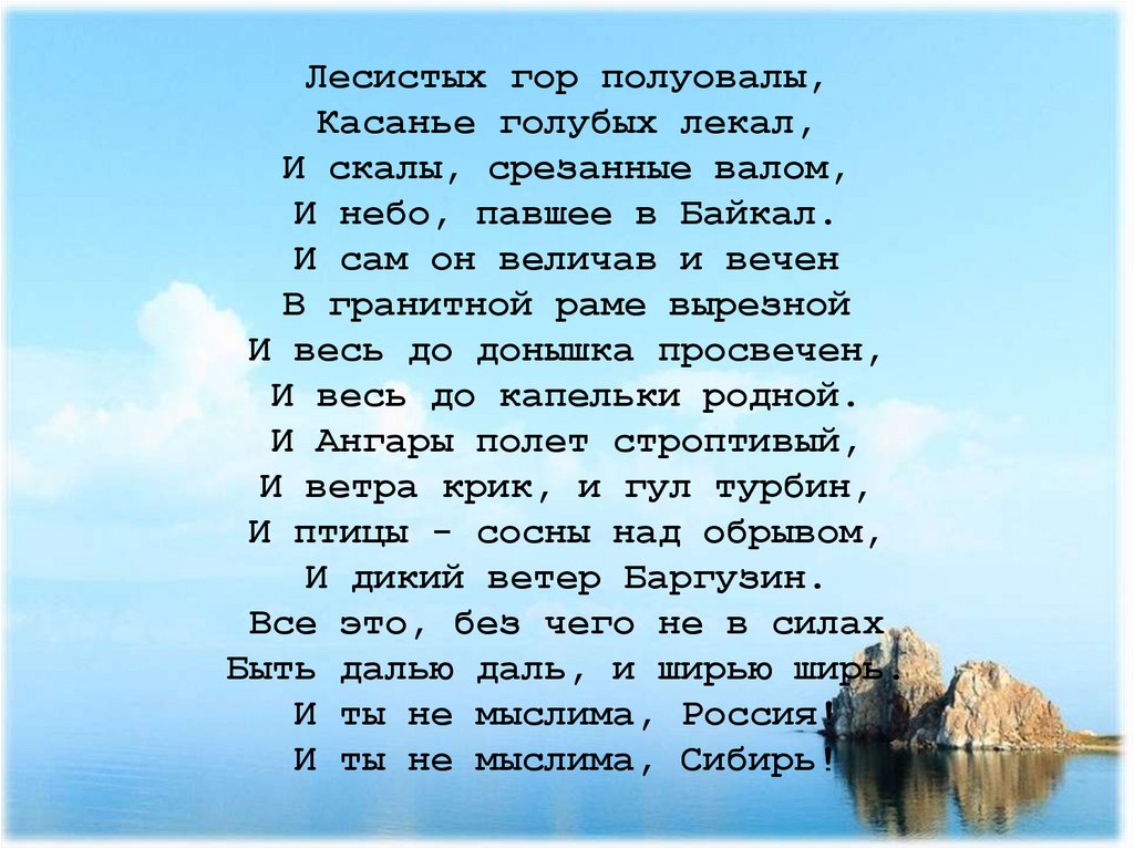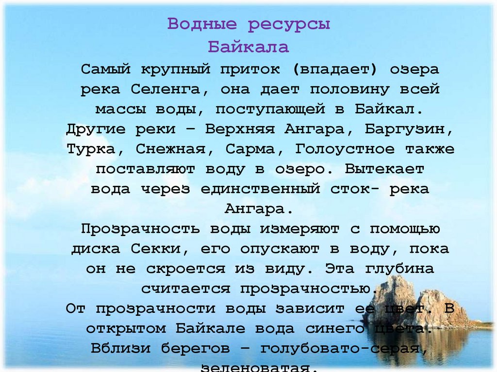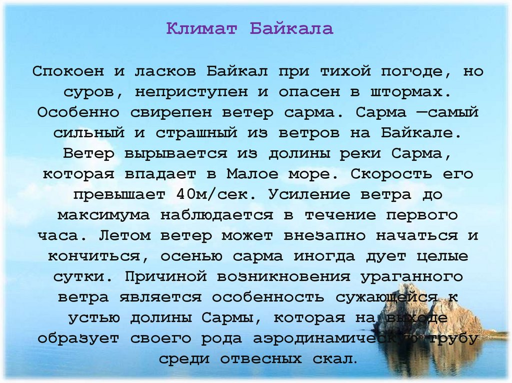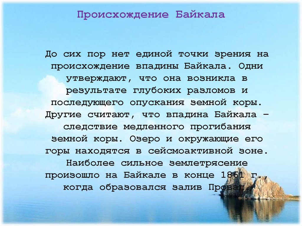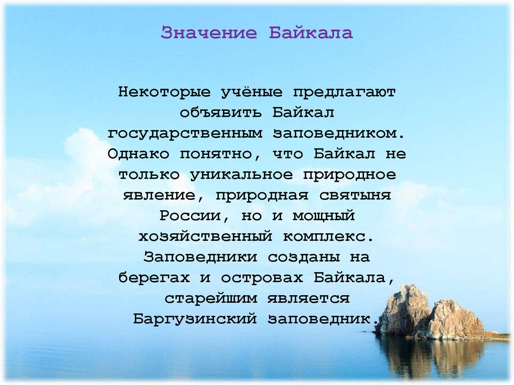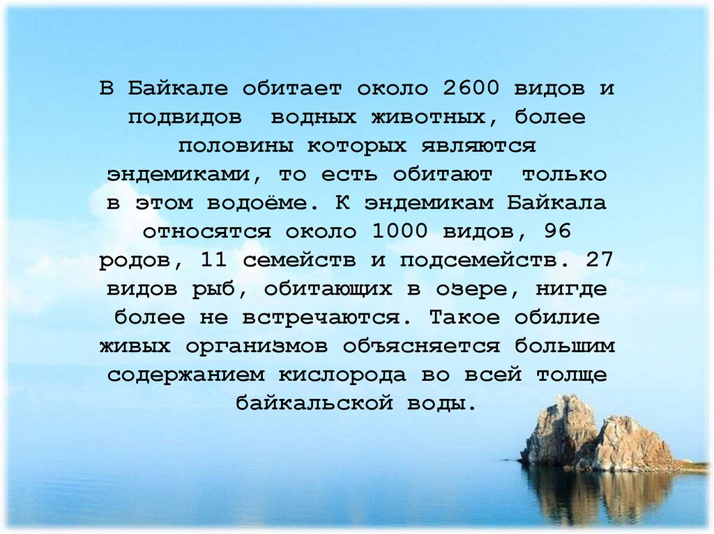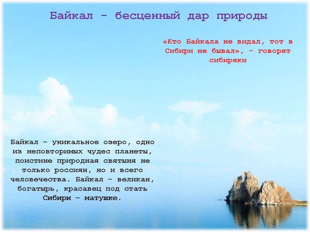 Байкал - бесценный дар природы«Кто Байкала не видал, тот в