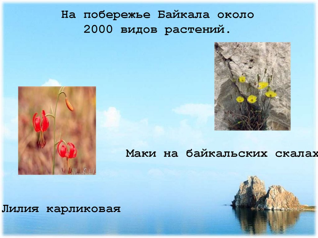 На побережье Байкала около2000 видов растений.