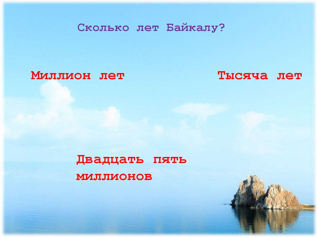 Сколько лет Байкалу?Миллион лет