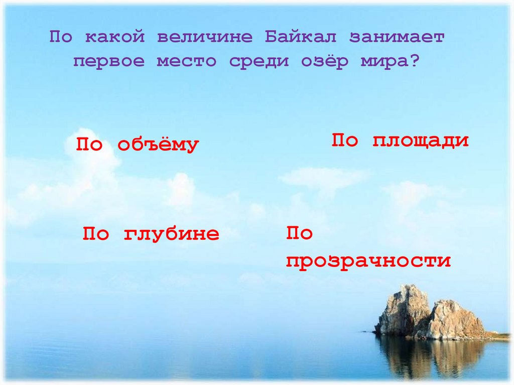 По какой величине Байкал занимаетпервое место среди озёр мира?