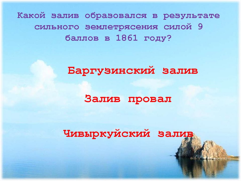 Какой залив образовался в результатесильного землетрясения силой 9