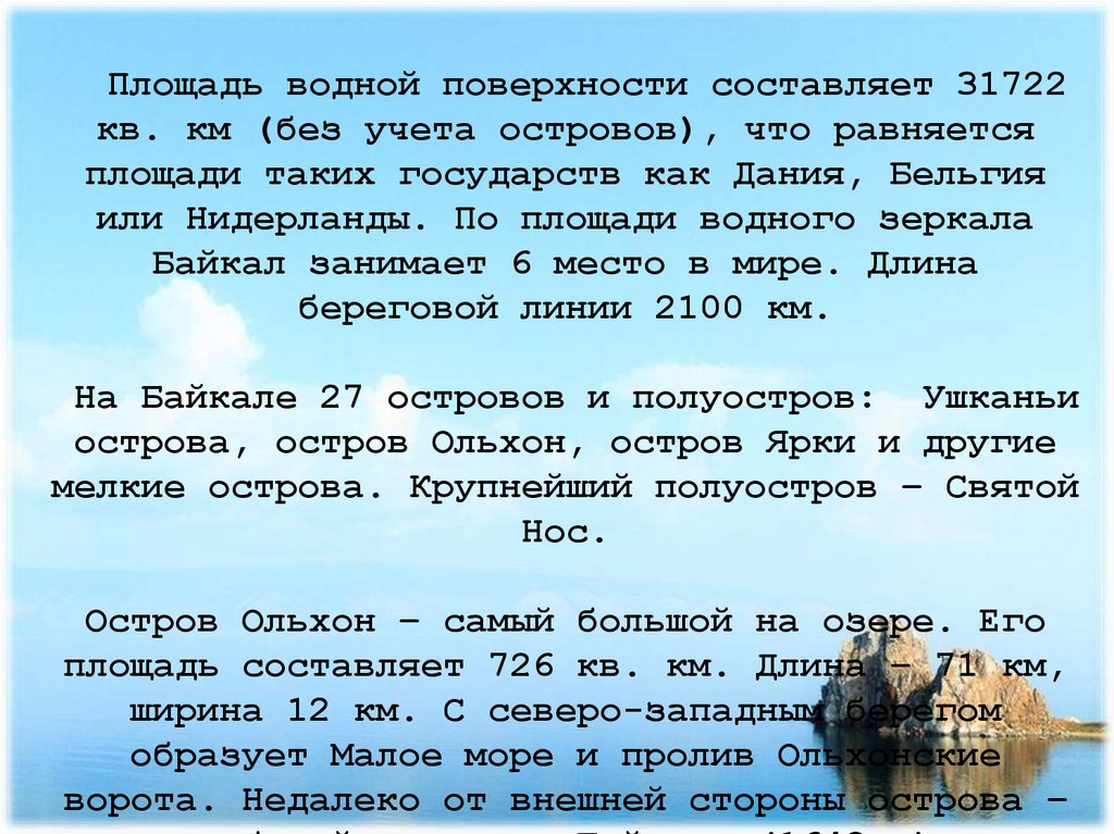 острова, остров Ольхон, остров Ярки и другие