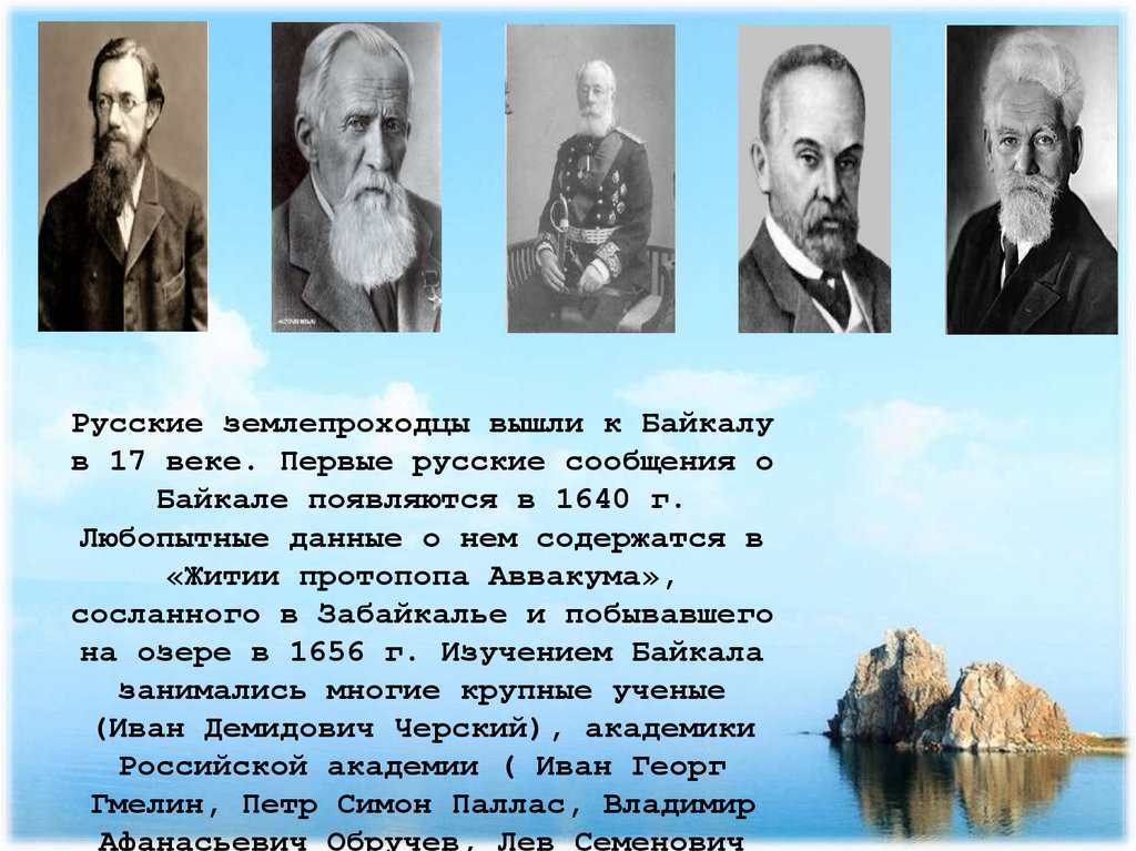 Русские землепроходцы вышли к Байкалув 17 веке. Первые русские сообщения о