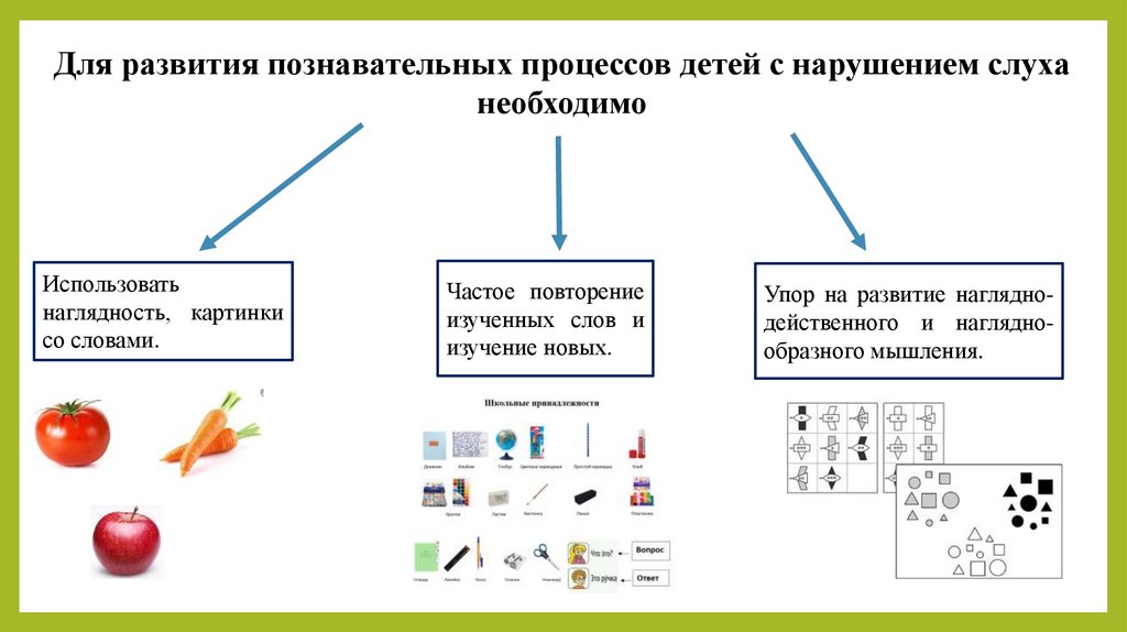 Для развития познавательных процессов детей с нарушением слуханеобходимо