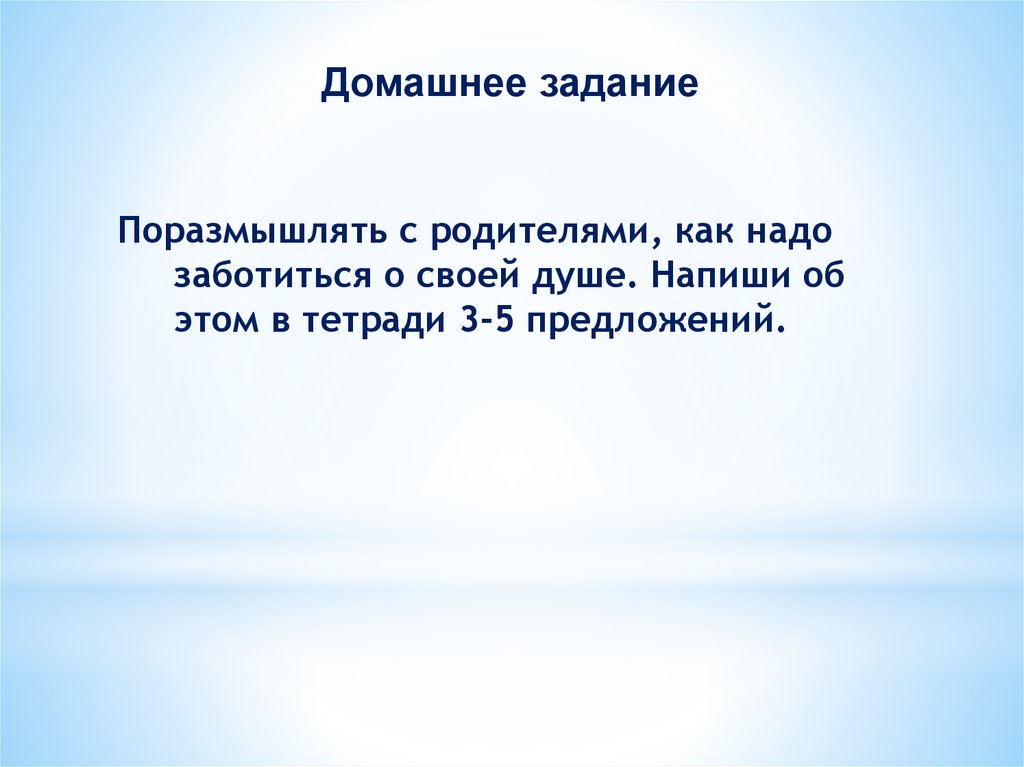 Домашнее заданиеПоразмышлять с родителями, как надо