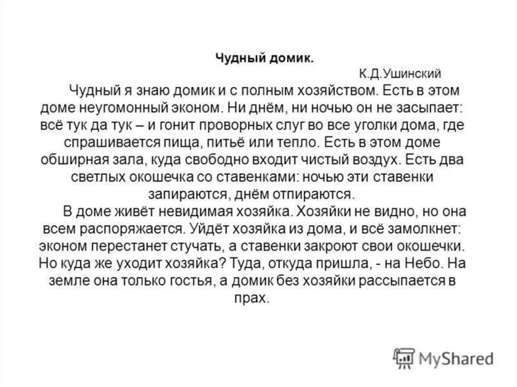 К.Д. Ушинский «Чудный домик»рассказ - загадка