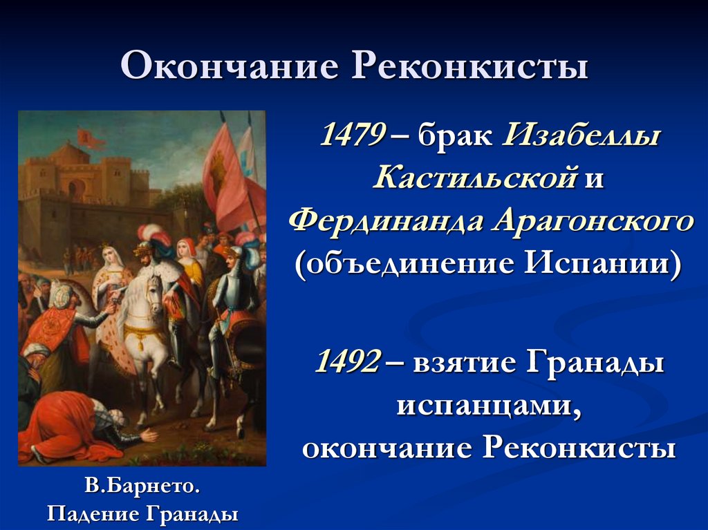 Окончание Реконкисты1479 – брак Изабеллы