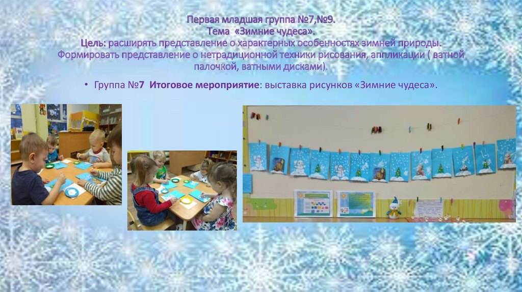 Первая младшая группа №7,№9.Тема «Зимние чудеса».