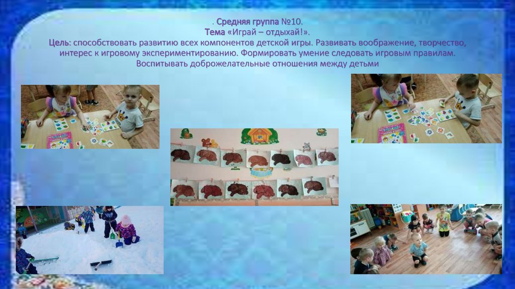 . Средняя группа №10.Тема «Играй – отдыхай!».